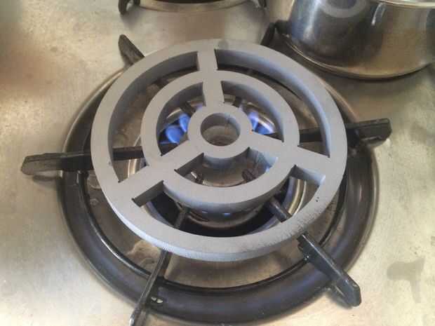 Tenemos un vieja estufa/rango en el país, y lamentablemente los controles de gas no son lo que precisa. No hay mucho de un final de 'bajo', lo que hace casi imposible a fuego lento algo durante mucho tiempo. Con unos pocos minutos en un cortador de chorro de agua y una losa de acero, hice este salvamanteles para elevar nuestras cacerolas y más distancia de la fuente de la llama.