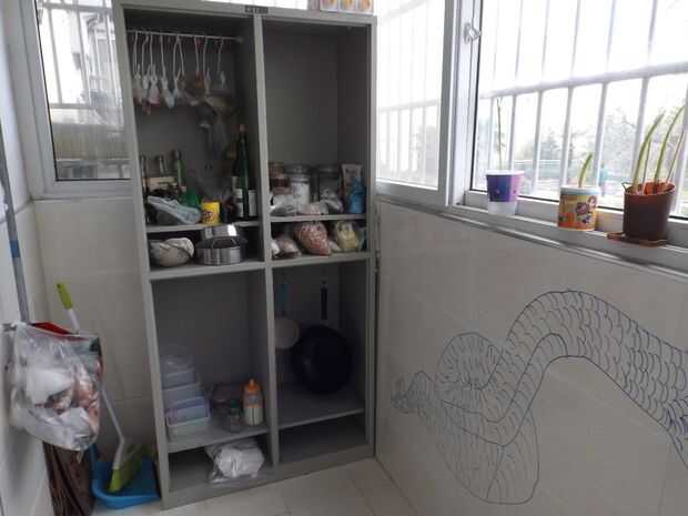 Escondido en mi dormitorio de repuesto fueron los casilleros que ves arriba. Estaban sucios y llenos de todo tipo de cosas raras. Alrededor de un mes en mi tiempo en mi apartamento decidí que iba a finalmente limpiarlos hacia fuera. Mucha lejía y algunos desgarradora intestino huele más tarde que tuve algunos armarios limpiamos brillantes para poner en algún lugar. Como espacio de almacenamiento era inexistente excepto los gabinetes debajo del mostrador, inmediatamente fueron llevados a la cocina.