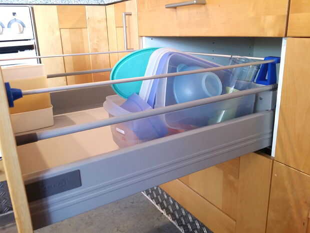 Bugged por la caída de tazas de plástico y cajas detrás de nuestro cajón grande que he hecho esta extensión.