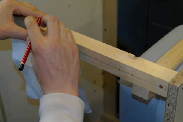 Marque abajo donde quieres poner los tornillos para fijar el tablón a la viga.