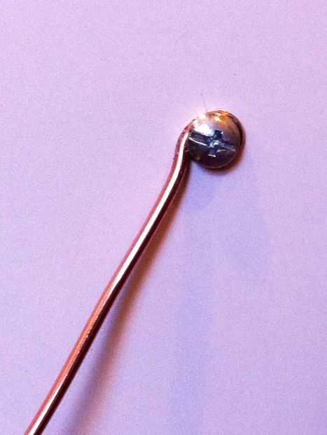 2. Utilice las pinzas para hacer el lazo del ojo para el gabinete inferior de 6-32 Tornillo de la manija.