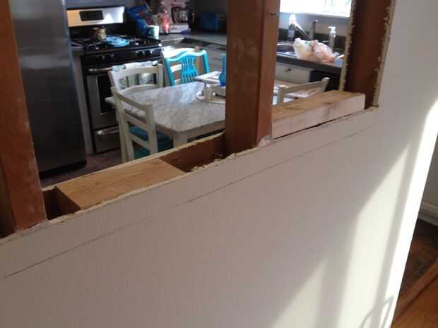 Utilice una sierra reciprocante para rebanar a través de los postes de madera en el centro. Haciéndolo de esta manera le permite hacer cortes precisos en la parte superior e inferior y no tiene una gran parte de la madera van volando a través de su comedor. Si recorta los postes de madera al ras con el yeso (tamaño de la abertura que se desea) en realidad terminaras con una abertura más pequeña desde la cabecera y pie de página 2 x 4 descansarán de parte superior de los postes de madera, reduciendo el agujero.