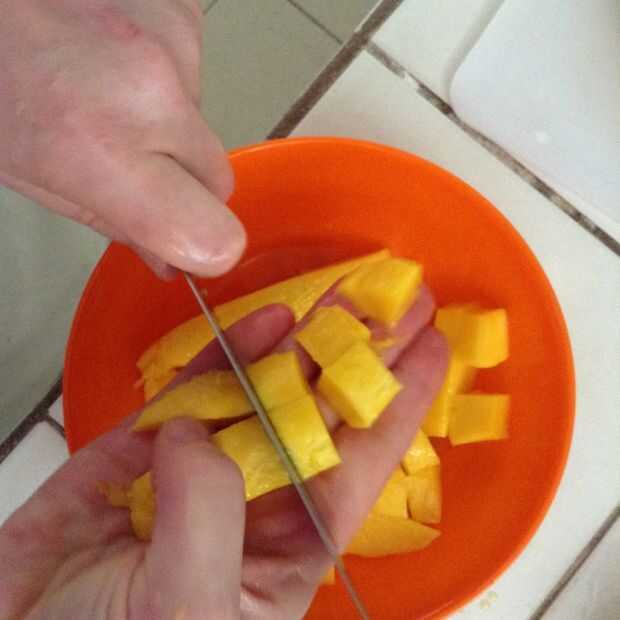 Si no tienes los mangos, duraznos y bayas incluso también funciona perfectamente en este postre. También intente cambiar los frutos secos y nueces.