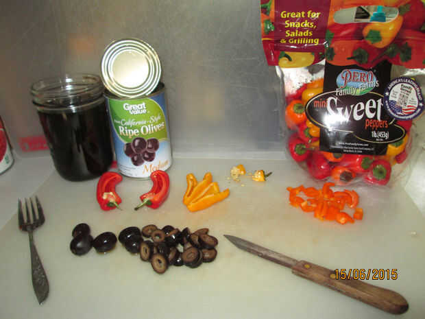 Cortar en rodajas aceitunas rebanadas de 3-5 por oliva.