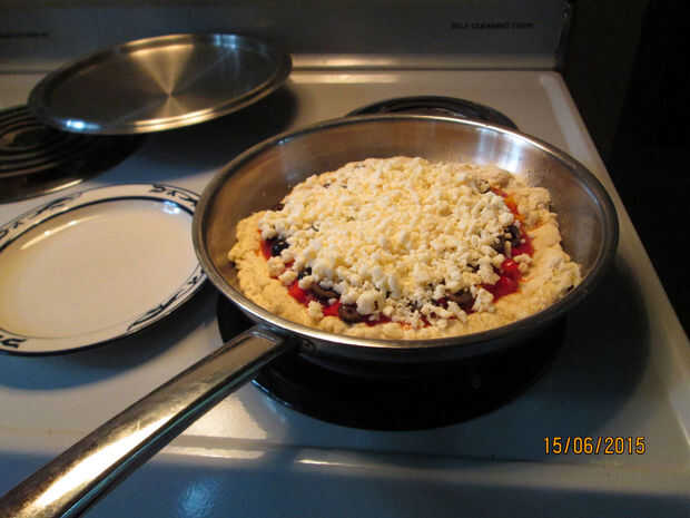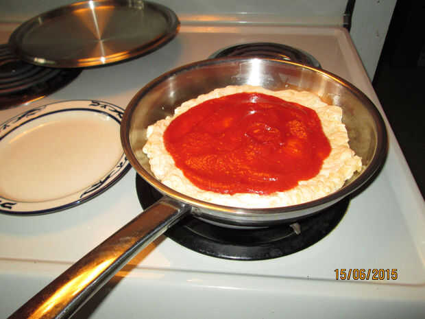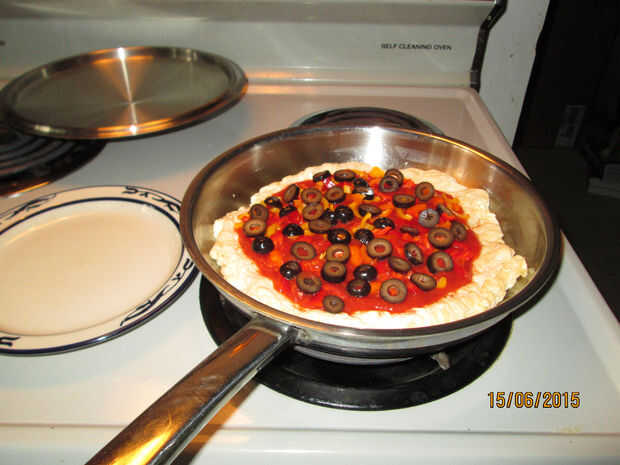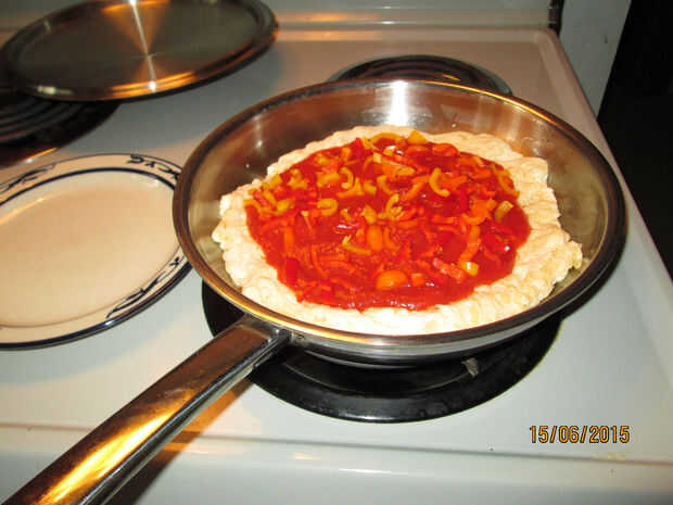Cubrir con una tapa ajustada. Cocine a fuego medio durante 5 minutos. Baje el calor a bajo y cocine por 20 minutos adicionales. Cuando pizza completamente cocinada sobre la estufa, recuerde apagar la hornilla de la estufa.