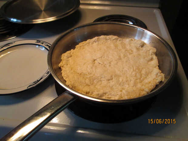 En un sartén cubrerrueda múltiple engrasada de 10 pulgadas o una sartén de hierro fundido, extender la masa, presionando para que sea una superficie lisa. No debe ir hacia los lados de la cacerola.