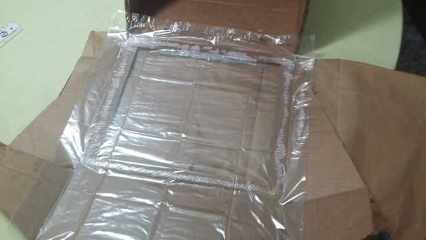 Coloque la bolsa de horno sobre la ventana y presione hacia abajo a lo largo de los bordes del pegamento.