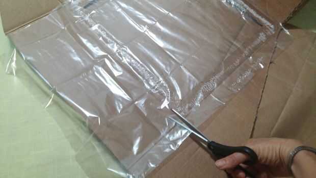 Cortar a lo largo de los bordes de la bolsa de horno. Se necesita pegar la segunda capa de la bolsa de horno a la primera que le doble espesor.