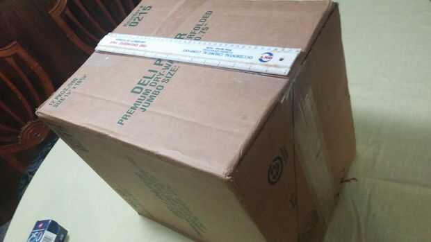 Utilizando el sorteo una línea abajo de la línea media del borde recto en el lado de la caja para cumplir con el corte hecho en la parte superior de la caja.