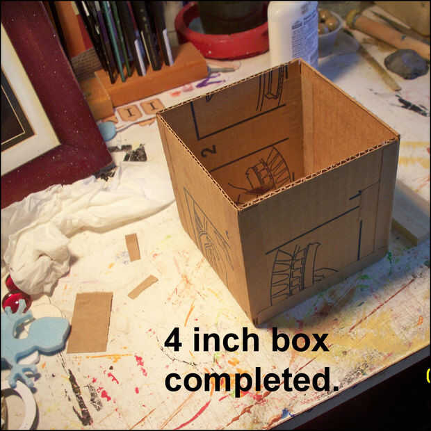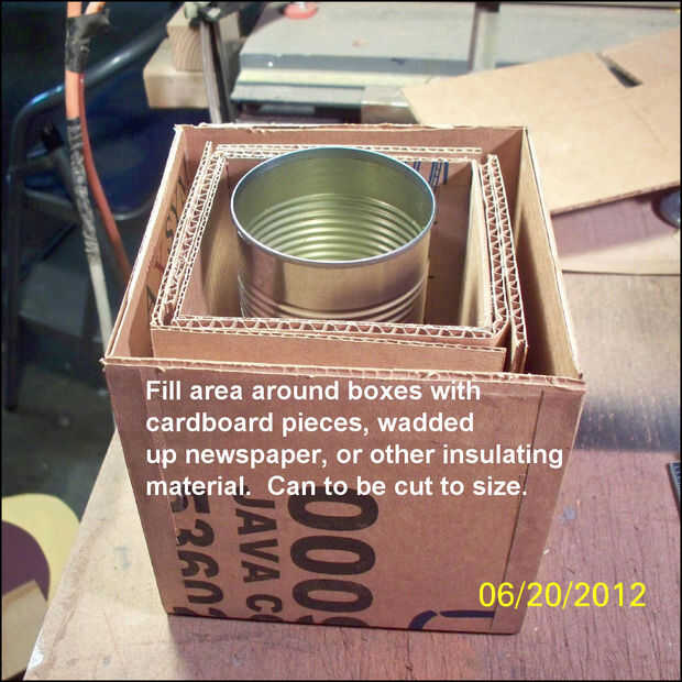Cuadros tienen instrucciones, pero básicamente lo que tienes que hacer es cortar las piezas como se muestra, el tamaño del horno es variable, por supuesto, pero esta maqueta tiene una cámara de cocción de 4x4x4inches. Una caja de 6 x 6 x 6 es la cáscara externa, y el espacio en el medio está lleno de material aislante, es decir, cartón, periódico u otros materiales aislantes.