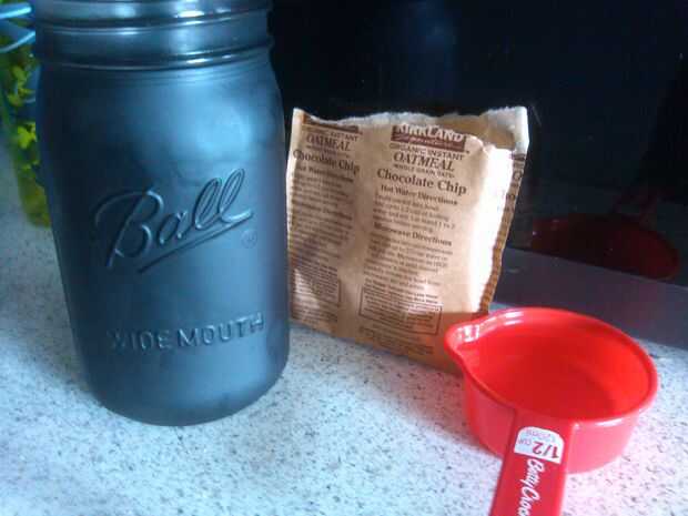 Paquetes de avena instantánea + grifo de 1/2 taza de agua 50 + F por el grifo.