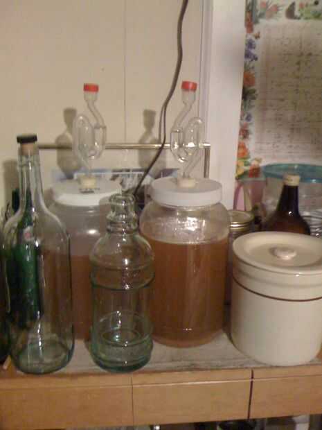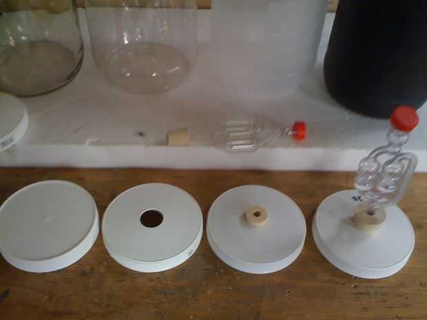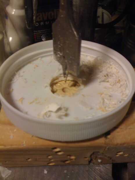 Un uso más para los recipientes exteriores, es para vinificar en. Todo lo que necesitas es un agujero en la tapa, un corcho y la adición de un borboteador y orificios como se muestra. Hace gran vino, toma un par de semanas. Receta sencilla es 9/10 de galón de jugo de uva, agregar una buena levadura vino, corcho con burbujeador y situado en un lugar cálido hasta que deja de burbujear. O puede usar una libra de uvas pasas remojadas durante la noche luego molidas, dos tazas de azúcar y algunos buena levadura. Asegúrese de esterilizar todo el equipo con una solución de cloro y agua primero. Por favor experimentar bajo su propio riesgo y ver como hacerlo correctamente. Y debe ser 21.