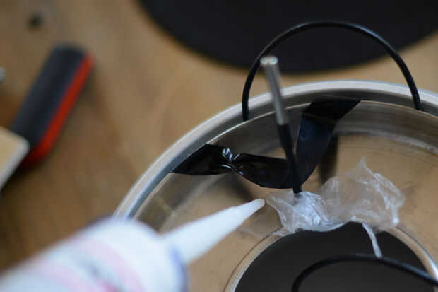 • Perfore un agujero a través de la tapa para poner el sensor. Debe ser bastante central