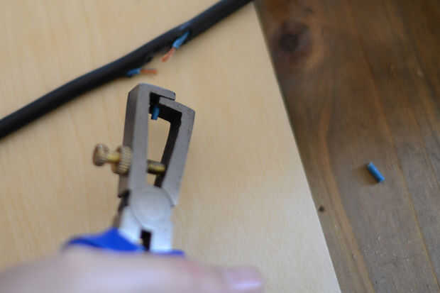 • RIP-abre el cable de alta tensión (por favor asegúrese de que no está conectado) y corte el cable de fase (no el uno de tierra o neutro). Usted puede comprobar en esta página que es el código de color que buscas dependiendo de la parte del mundo en que estás. Muchas gracias a Sembazuru para señalar. Usted puede notar que elijo mal a cortar el cable azul que es el neutro. Como vivo en Europa, debo haber recogido el cable marrón.
