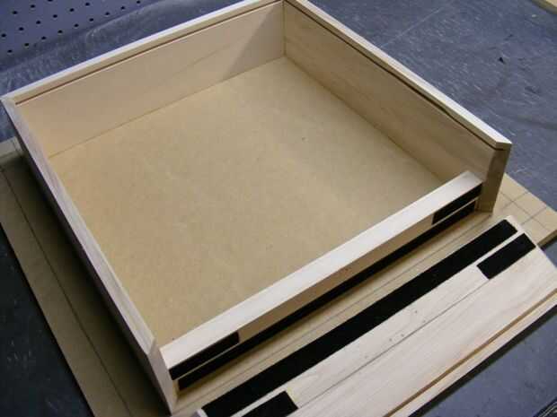 Empecé con un 18 "x 18" x 3/4"tablero del MDF de la parte superior. A continuación, usé tablas de álamo temblón pino de 4 "x 1/2" para la base de que la iluminación adicional de la casa y cambiar. Utilicé una sierra de mesa para cortar un surco a lo largo de las tablas que más adelante podría añadir una espesor inferior de 1/4" que sería capaz de quitar totalmente si necesitaba para trabajar en el cableado eléctrico. Siguiente, usando una ingleteadora, inglete los extremos de la aspen Junta para formar una caja que mide 13 "x 13" y todo lo que se con cerca de 2 pulgadas alrededor. Así, cuando fue terminado (y vuelta), tendría espacio para sostener los lados y mover con seguridad el soporte de la torta. Pega 3 lados de la "caja" en la parte inferior con pegamento para madera y cuando se seque, lo entregaron y asegurados con clavos pequeños.
