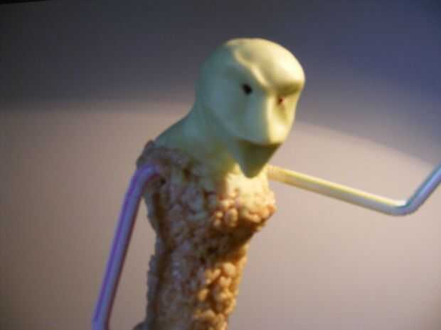 El otro brazo fue mucho más porque tenía un bastón de apoyo. Hice el palo primero, dejándola secar durante la noche por lo que sería difícil. También, este brazo sería más cercano a su cuerpo, para no tener que preocuparse tanto sobre el peso, yo pegado a su cuerpo, entonces después de formar su mano y antebrazo, descansaba sobre el bastón.