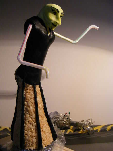 Tiempo total para la construcción de la bruja era cerca de 3 días, agregar en una semana de tiempo antes de la construcción de la torta real de secado.