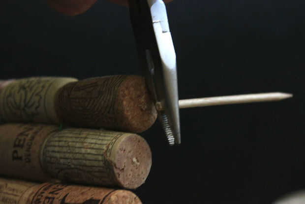 Con garras romper cuidadosamente la parte del palo de bambú que permanecía fuera del cierre de corcho. Estas pequeñas sobras pueden utilizarse para hacer los pequeños palillos mini afiladas. Le ayudará a fijar la parte superior de cada palo.