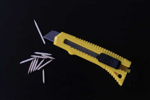 Usted tendrá que preparar 12 palillos mini pequeño. Les afila de cada extremo por el cortador o cortantes cuchillo.