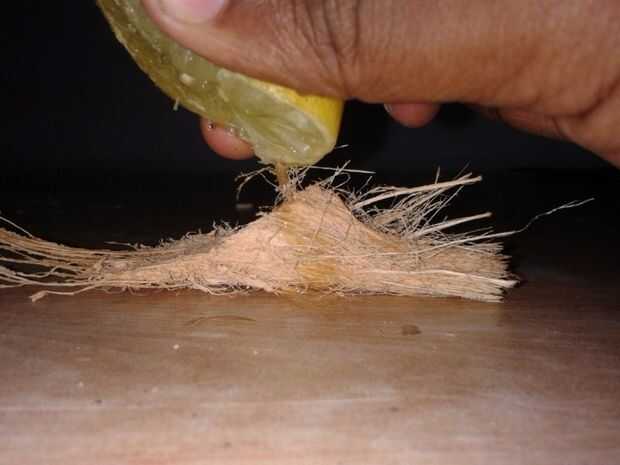 1) extraer algo de zumo de limón en la cáscara del coco.