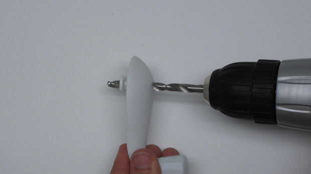 Luego inserte un 1/4" perno a través del agujero perforado con la cabeza del perno en el interior del rallador. La longitud del tornillo no es crítico. Solo necesita ser lo suficientemente larga para que sobresalga más allá del extremo de la manija por mínimo 1/2". Luego apriete una tuerca de 1/4" en el exterior del perno y vuelva a montar el rallador de queso. Simplemente coloque el taladro para el perno expuesto y tienes un rallador de queso eléctrico. Si las vueltas de tornillo libre de la manija durante el uso, necesitará más apretar la tuerca hasta la manija y tornillo de vuelta juntos.