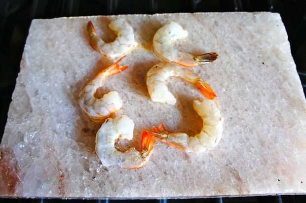 Para cocinar los camarones, colocarlos directamente en el bloque de sal.
