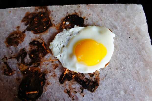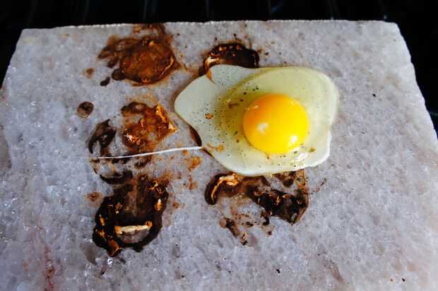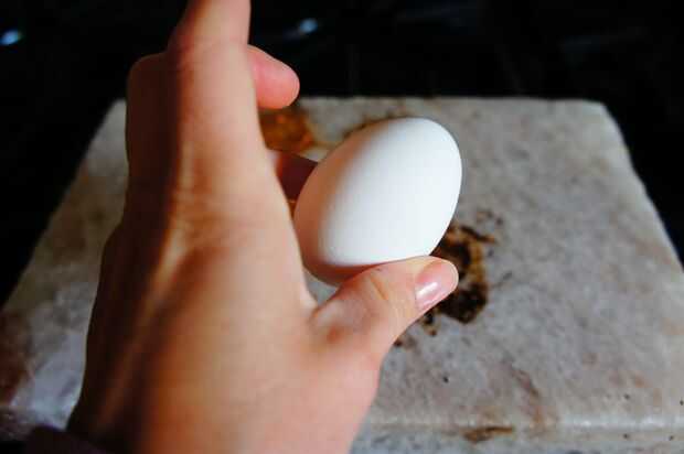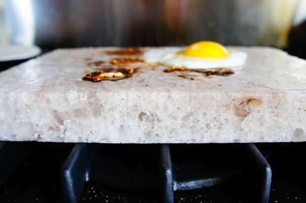 Para cocinar el huevo, colóquela directamente en el bloque de sal. Encontré un par adicional minutos a cocinar en la placa de sal que en una olla regular.