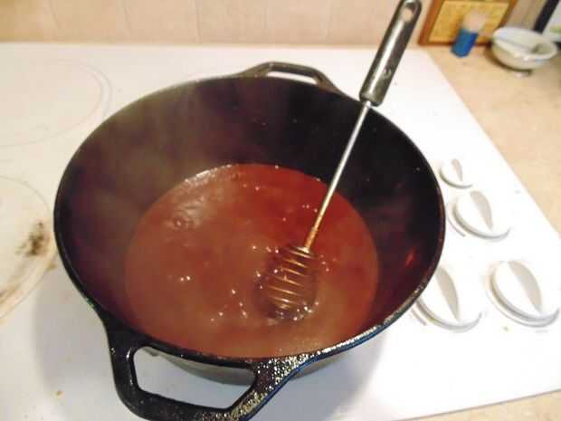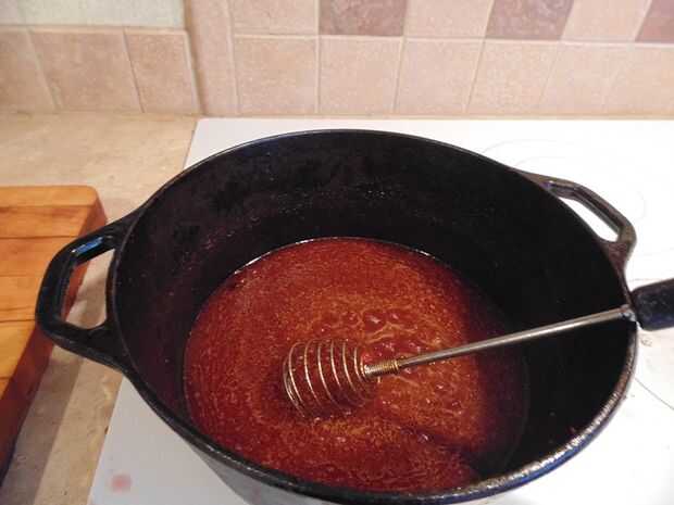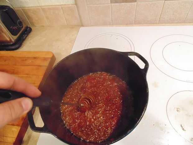 Vamos a cocinar, revolviendo constantemente, hasta que se reduzca en un 50%.