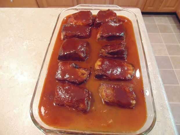 Cuando termine, vierta la mezcla en el recipiente sobre las costillas.