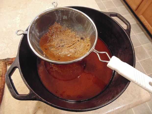 Colar el líquido en el recipiente a través de un tamiz fino, en la bandeja de abrasador, asegurándose de que Machaque los dientes de ajo a través de la pantalla.