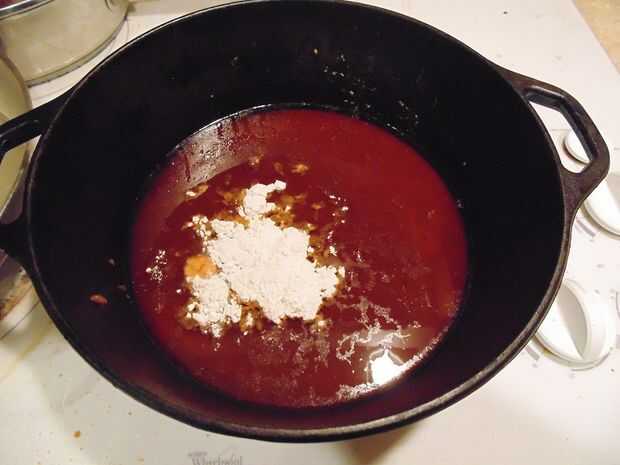 Añadir 2-3 cucharadas de harina a la salsa y calentar en medio, mientras que batir, hasta que se espese para arriba en una salsa marrón agradable. Sal y pimienta al gusto. El olor y el sabor será increíble!