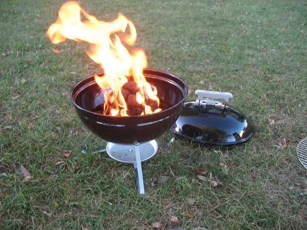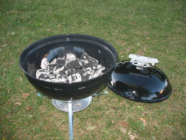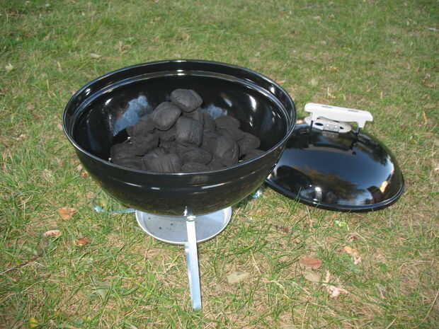Para empezar a hacer seguro que tanto de las válvulas están abiertas, vierta en un carbón de leña en la parrilla encima de la rejilla inferior. Entonces lo que quieres hacer, con el carbón de leña tratar de hacer un tipo de pirámide de forma (nota no tiene que ser perfecto sólo intentar obtener la forma general). Hacerlo con una base de cerca de diez pulgadas. Luego sumerja el carbón con líquido encendedor, no demasiado aunque. Luego con cuidado la luz en el fuego.