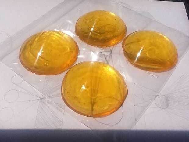 No sé cuánto durará. La sabiduría convencional caramelo dice que candy puede durar indefinidamente en condiciones frescas, claro, pero si exponga a la cabeza o de agua, deformación y disolver lejos. El azúcar es higroscópico , lo que significa que quiere atraer y absorber el agua. Esto es por qué, si azúcar durante mucho tiempo, se formará una película pegajosa. En nuestro caso, que realmente puede ser una buena cosa: el agua ablanda la capa superior de la lente, y comienza a fluir un poco. Según mi experiencia, esta un poco es suficiente para suavizar las irregularidades de la superficie restantes y llevar la lente a un brillo agradable, alto.