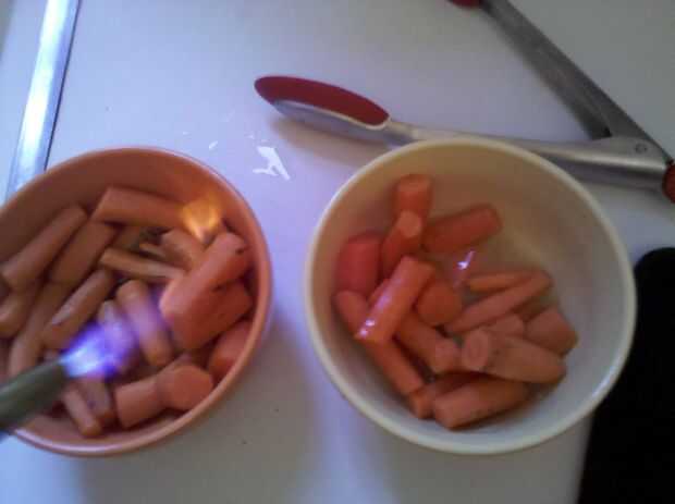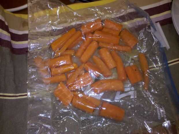 Les pueden servir inmediatamente después de retirar de la bolsa o puede tomar unos minutos para dorar el exterior de las zanahorias. Utilice una sartén caliente o un soplete. Si dorarlas en una sartén, también puede reducir el líquido en las bolsas para hacer una salsa dulce de las zanahorias.