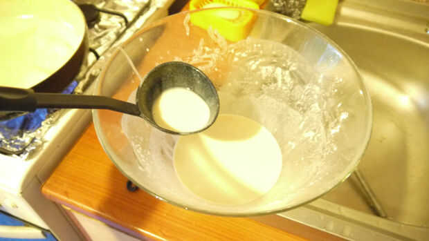 Usted puede Agregar flores y mezcla hasta que la masa llega a ser similar a una salsa. No de grosor pero no ese líquido. Si es líquido, añadir más harina y mezclar. Si queda demasiado espesa, como una masa de pan, agregar más leche.