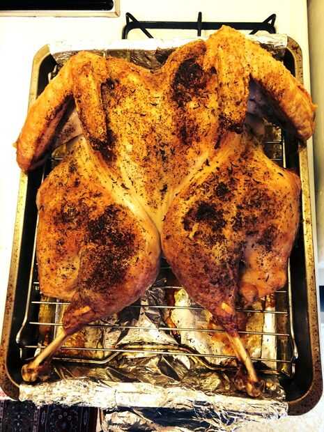 yo uso aceite de oliva, pero se puede utilizar mantequilla si quieres. Unte la parte superior de las Ave en aceite de oliva y sal y pimienta y cualquier otro secado hierbas que desee y pop en un horno de 450 grados. Después de aproximadamente una hora, se debe hacer. Como con cualquier Turquía, apertura que horno 10 veces mientras está cocinando mientras que alargar la cocción tiempo, así que trate de evitar la apertura hasta la hora. Si usted siente que tiene que ir más, cubrir la parte superior con papel para que no quemar la piel y de mantener en el horno.