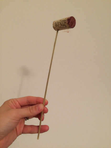 El bigote agrega mucho de este personaje pero la respiración, beber, comer, y hablar sería difícil con este atado a mi cara. Decidí ir a la ruta de apoyo photobooth y ponerlo en un palo. Con las limitadas herramientas que tenía, poner un palo de madera de la infusión en un corcho del vino para Cruz apoyo y utiliza algunos trámites burocráticos para mantener el material difuso en su lugar por debajo. Trabajó como un encanto y estaba firmemente en el lugar toda la noche. Cuando quería posar o ser completamente en carácter que pude sacar de mi bolsillo de delantal (conveniente!) pero el resto de la noche que yo no estaba inhibido.