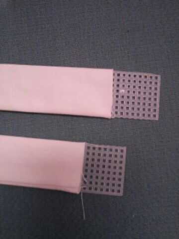 Deslice una tira de lona plástica en cada tejido de la carcasa. doblar los bordes abiertos de la tela interior y la mano de puntada cerrada.