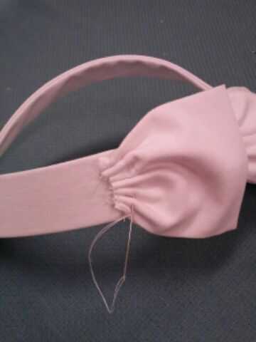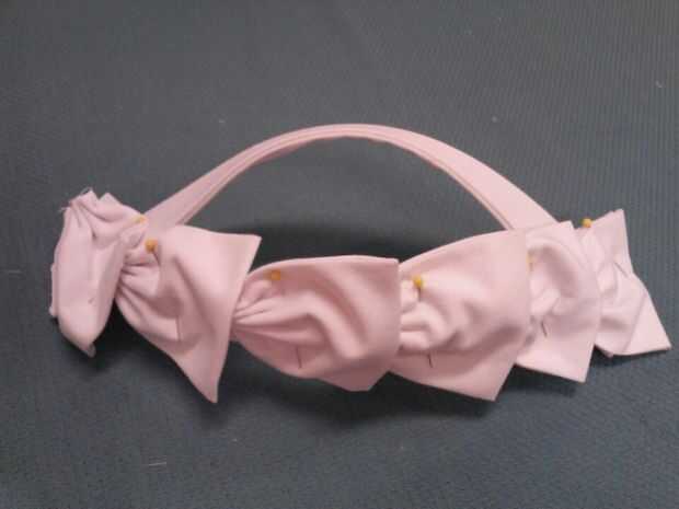 En la parte delantera del sombrero, coser 2 "pétalos" en cada lado, superpuestas. Los bordes deben hacer frente el centro y el arco ocultará los bordes crudos cuando se sutura en el lugar.