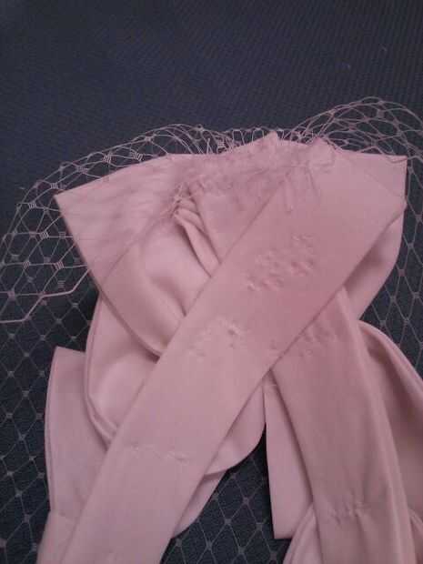 Cortar un trozo de red 14" de largo. Colocar en la parte superior del sombrero, hacer pliegues a los lados para que quede suelto, remeter los bordes en la parte inferior y el pin en su lugar. Después de haber dispuesto lo donde usted lo desee, puntada de la mano.