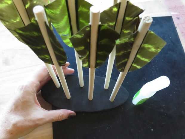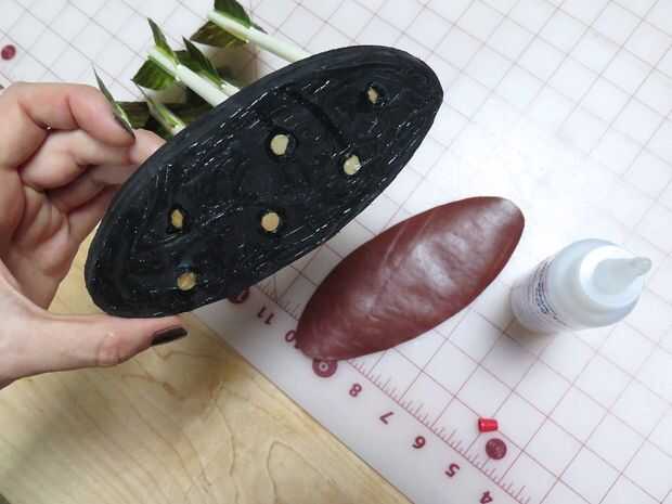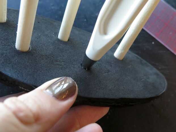 Una vez mi "flechas" fueron Cañamero penetra los agujeros en mi espuma con un punzón y había pegado las flechas. Había asegurado en la parte inferior con pegamento y luego pegado un pedazo de cuero en la parte inferior para ocultar los extremos.
