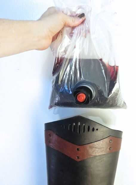 Ahora llene la bolsa de hidratación con su bebida favorita o dispensar una bebida los sacos de abajo para compartir con tus amigos. Hay un montón de wine-in-a-bag-in-a-box bastante potable en el mercado estos días, así que necesitan agacharse a Franzia. Por supuesto, usted puede también olvidar las bebidas y utilizar la aljaba como un conveniente estuche integrado en su traje.