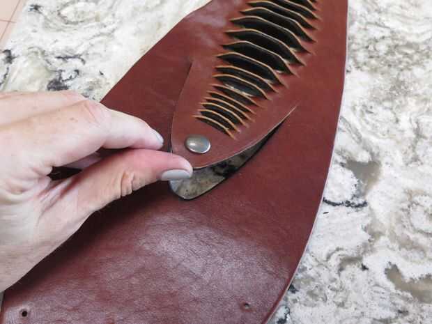 He creado el detalle rasgado en mi pieza de cuero marrón/negro utilizando una técnica sencilla que aprendí hace poco que describen totalmente en este Instructable. Puedes añadir cualquier tipo de detalle que te gusta aquí, o dejarlo simple.