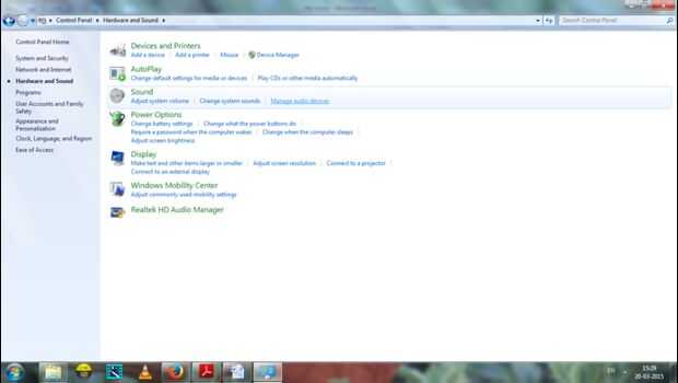 1) ir a panel de Control >Hardware y sonido > administrar dispositivos de audio