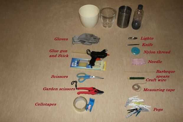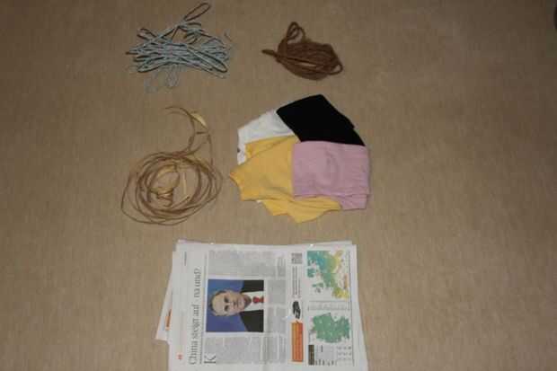 Coco, plástico, hilo, raíces, heno, papel (1 / 8 paso)