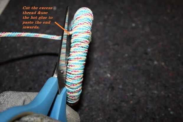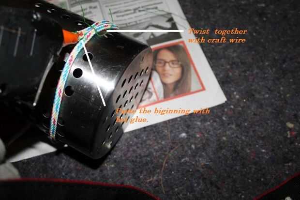 Plástico es un poco resbaladizo, así que giro con el alambre de la artesanía en el biginning donde pegar con pegamento caliente. Una vez que tome el utensilio y empezar a envolver alrededor en redondos pequeños, por favor asegúrese de que tira muy bien y no deje suelto que en cualquier momento. Se puede ver en mis fotos cuando hago la envoltura, mantengo con un dedo, para que no se suelta. Mientras continúa el wapping quitar el arte los cables uno por uno. Para terminar el corte de la envoltura del exceso y de la goma hacia el interior con pegamento caliente.