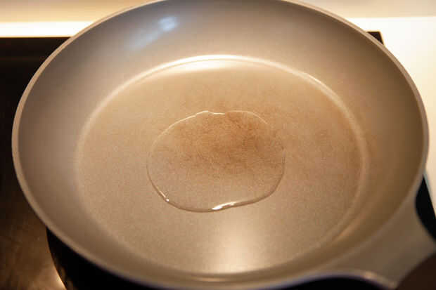 • Calentar 2 cucharadas de aceite de coco en una sartén antiadherente sobre fuego medio alto y uniformemente la capa de la cacerola