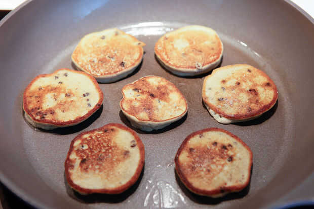 • Dejar caer una cucharada por crepe en la sartén, ajuste 7 panqueques en mi pan