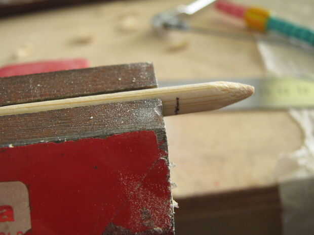 Medida 1" del extremo de los palillos