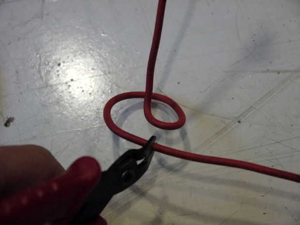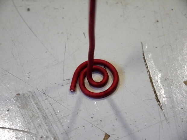 A continuación necesitamos la base de la bobina. Para hacer de este lugar el alambre sobre un banco, coloque un dedo en el cable donde le como la base, luego doblar el alambre en un ángulo recto. Recomiendo hacer más corto luego de 8cm para mantenerse estable.